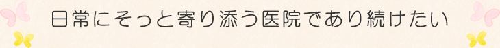 そんなふうに皆さんの日常にそっと寄り添う医院でありたいと願っています。